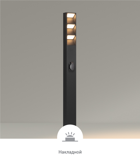 Модельный ряд Два варианта светильника: 1) стандартная модель с защитой IP65; 2) модель с защитой IP54 и герметичной розеткой 230 В на корпусе для подсоединения садовой техники. Второй вариант не рекомендуется использовать в местах, где возможно прямое попадание струй воды.