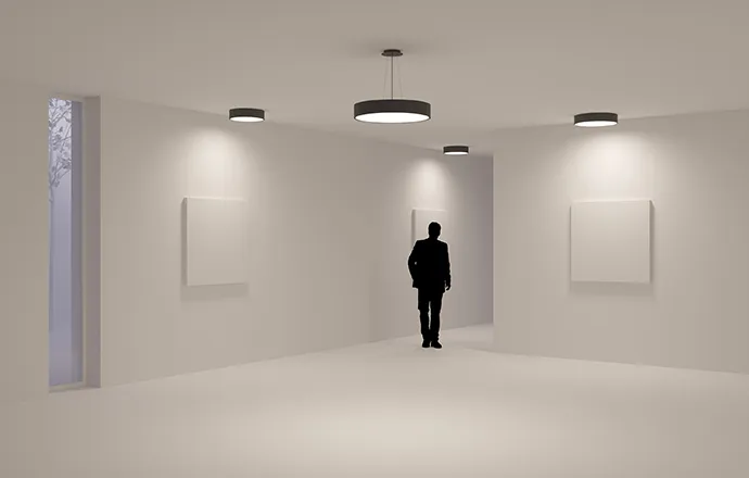 Белые и черные корпуса накладного и подвесного монтажа. Диаметр светильников 400, 500, 600, 800 мм.