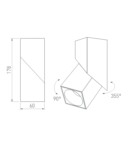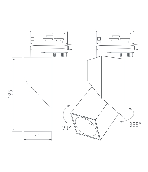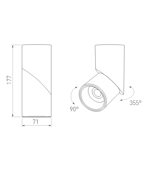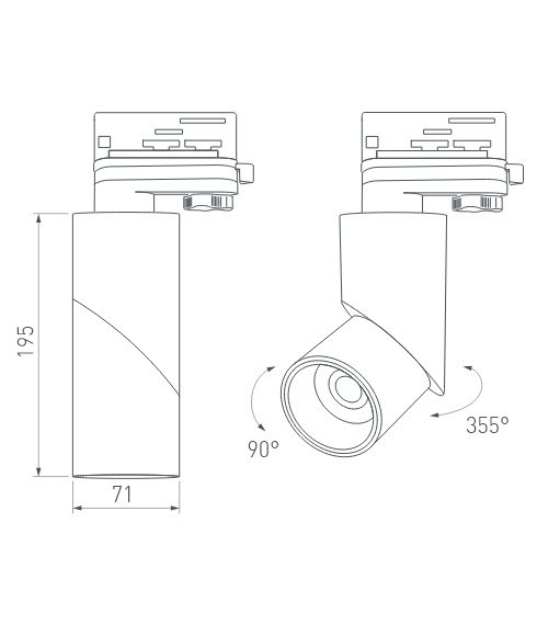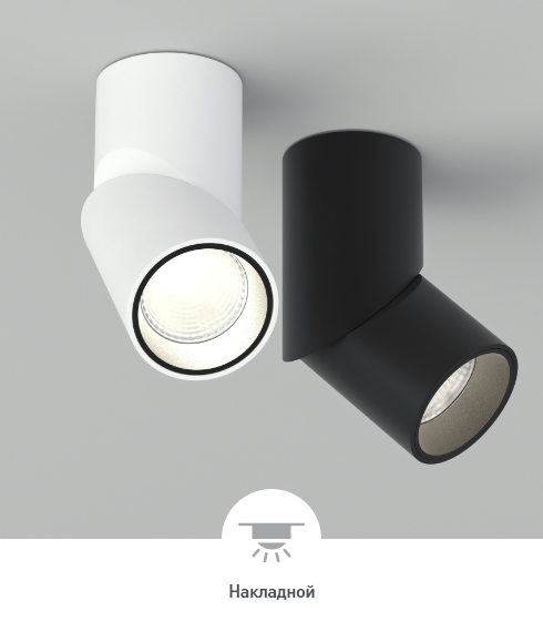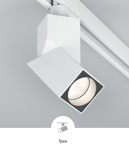 Накладные и трековые светильники (для трехфазной шины 4TRA). Основание светильника можно вращать на 355° вокруг своей оси и регулировать угол наклона до 90°. Свет можно направить вертикально вниз, горизонтально (параллельно потолку) или наклонить под нужным углом.