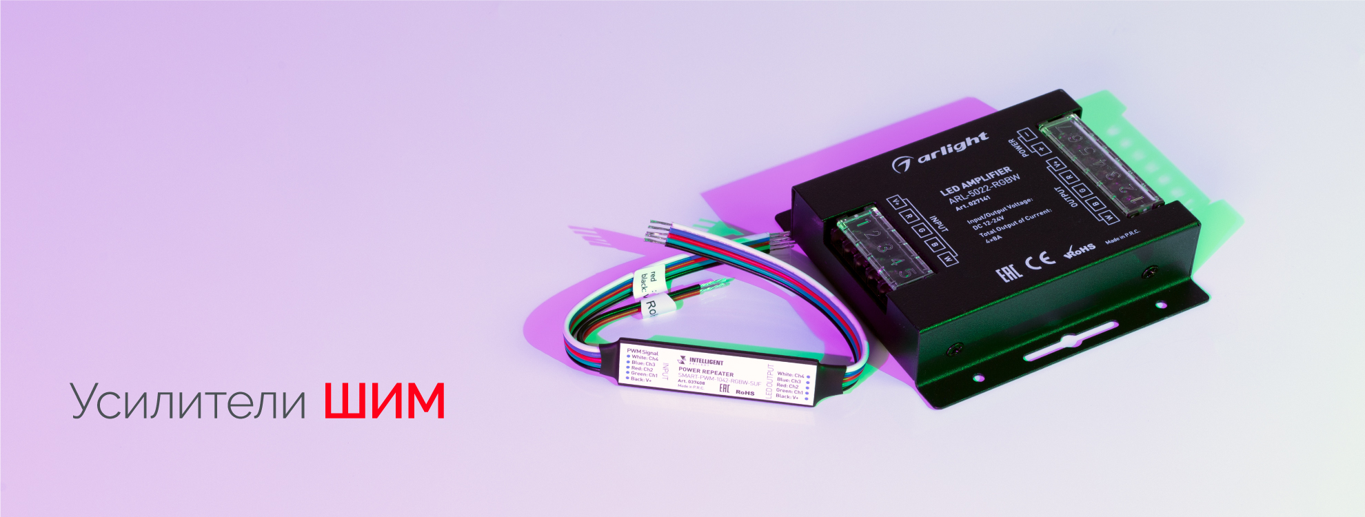 Усилители ШИМ предназначены для увеличения мощности и подключения большего количества монохромных (DIM), мультибелых (MIX) и мультицветных (RGBW) светодиодных лент. Позволяют решить проблемы мерцающего света, нестабильного запуска или отсутствия диммирования, вызванные малой потребляемой мощностью светодиодных источников света.