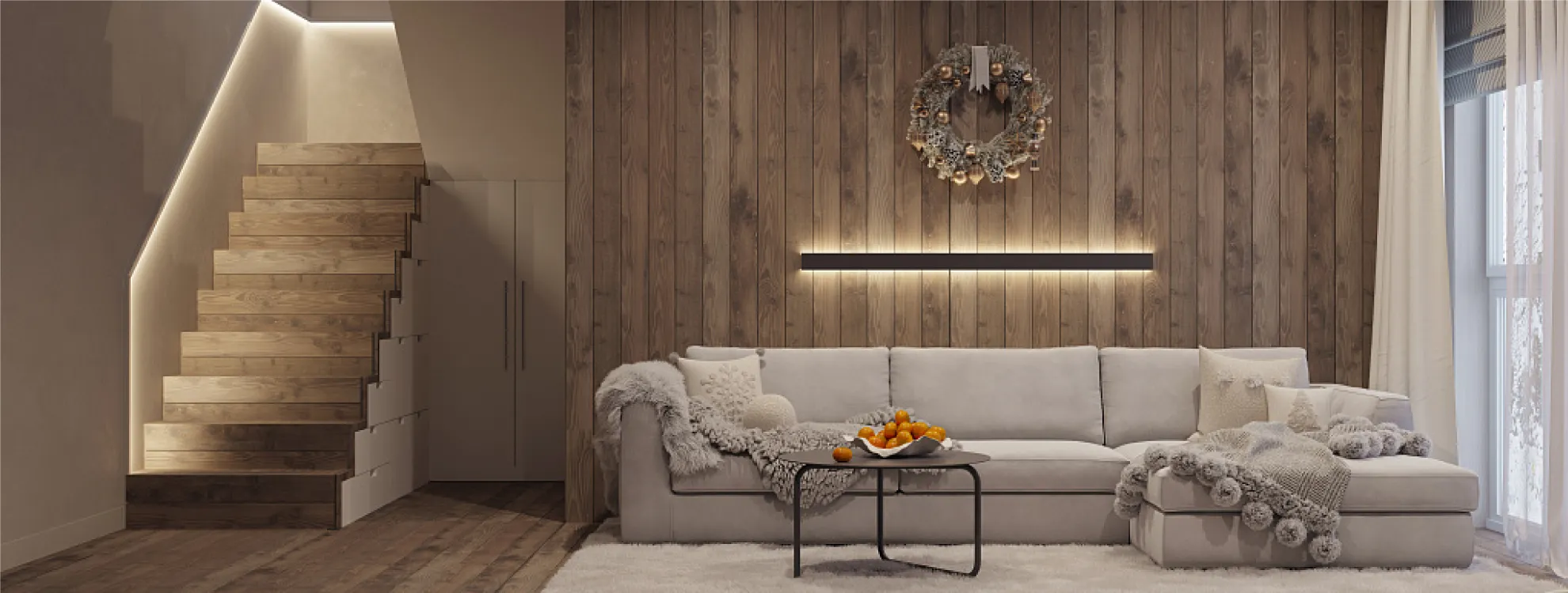 Применение Профили можно располагать как горизонтально, в виде настенных светильников разной длины, так и вертикально — для зонирования пространства. Также можно использовать профиль в виде декоративного поручня для оформления лестничного пролета.