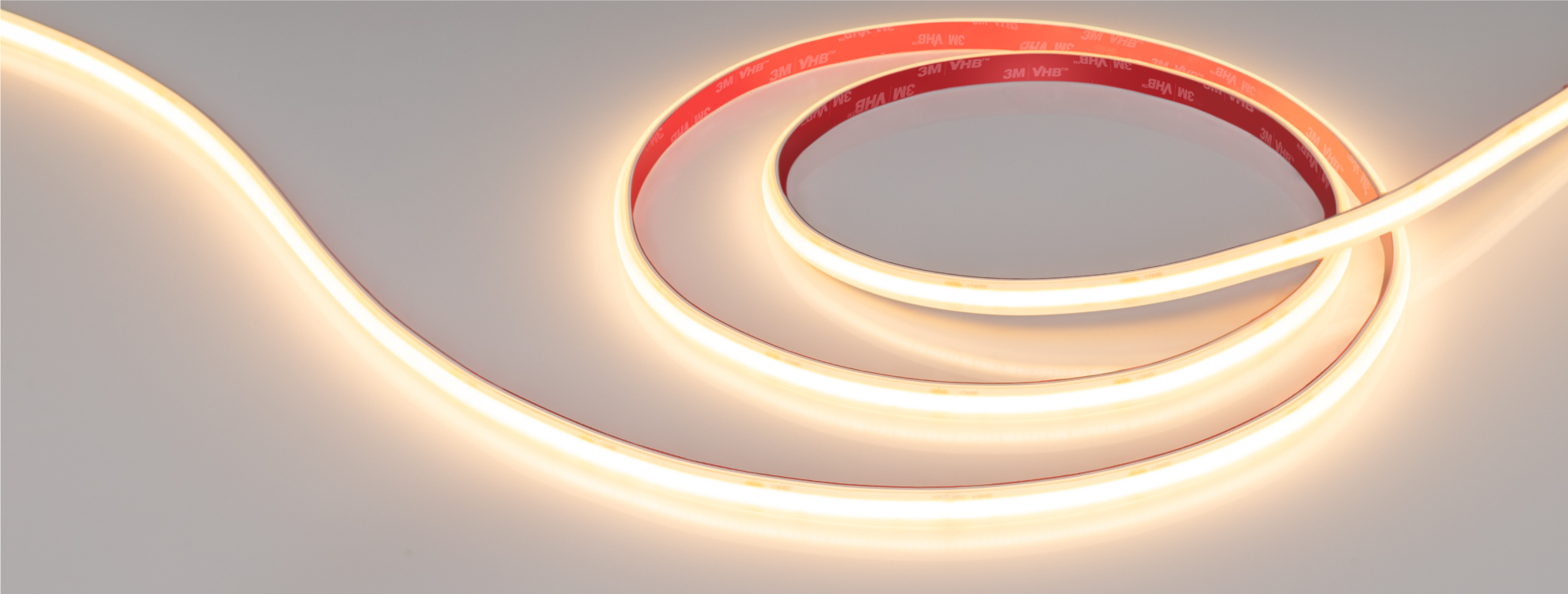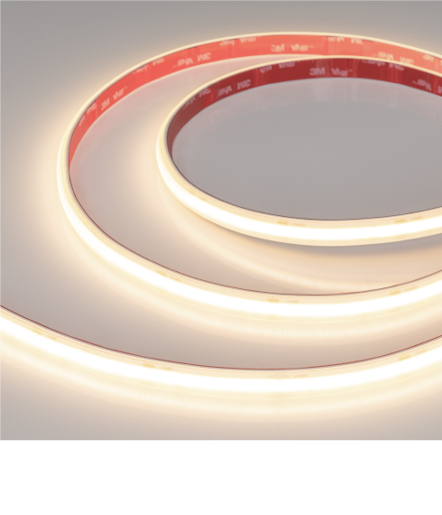 Бескорпусные COB-ленты с эффектом сплошной линии света даже без применения рассеивающих экранов предназначены для декоративной подсветки интерьеров, ванных комнат, витрин, а также бань и саун.
