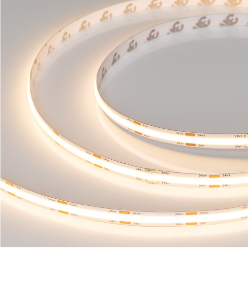 Комплектация Лента поставляется в катушках по 5 метров. Напряжение питания — 24 В. Для подключения требуется блок питания, мощность которого подбирается с запасом 25% от суммарной нагрузки потребителей. Рекомендуется установка в профиль.