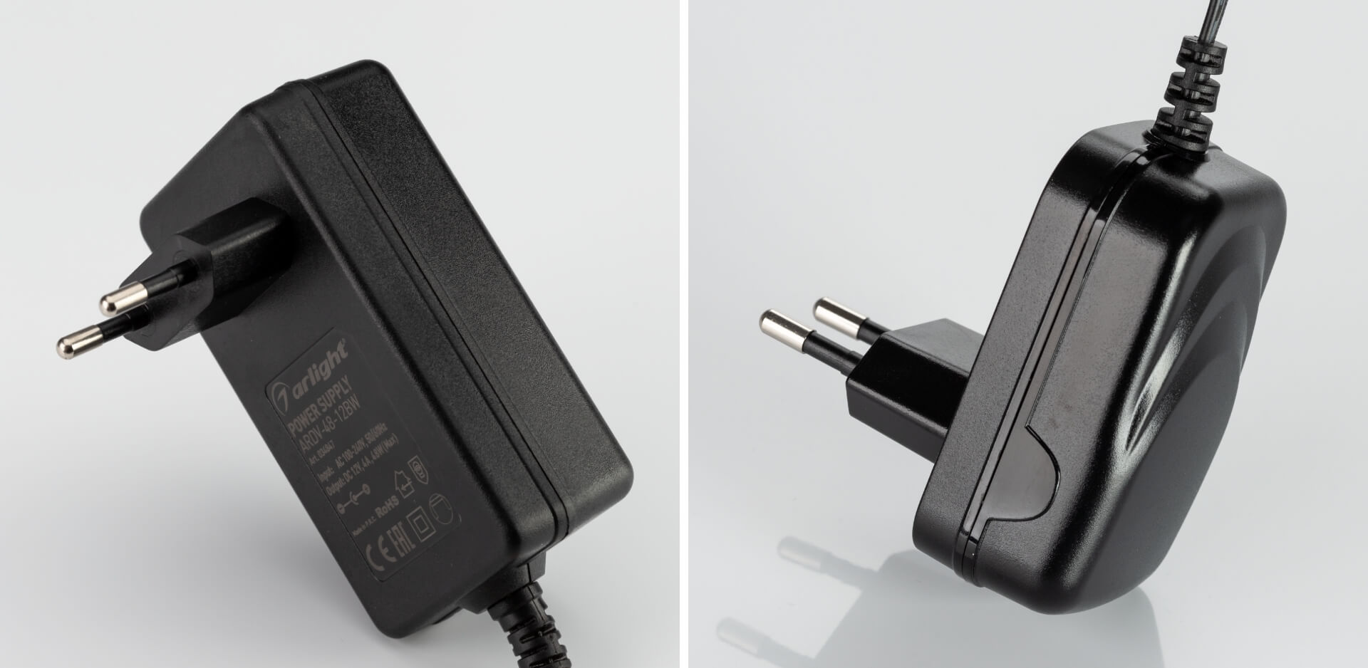 ПЯТЬ МОДЕЛЕЙ НАСТЕННЫХ СЕТЕВЫХ АДАПТЕРОВ с гальванической развязкой для питания светодиодных лент, светильников, бытовой техники и другого оборудования. Удобны в использовании, включаются непосредственно в розетку, находящуюся на стене. Сетевая вилка совмещена с корпусом адаптера. Длина кабеля составляет 1.5 м. Предназначены для эксплуатации внутри помещений.