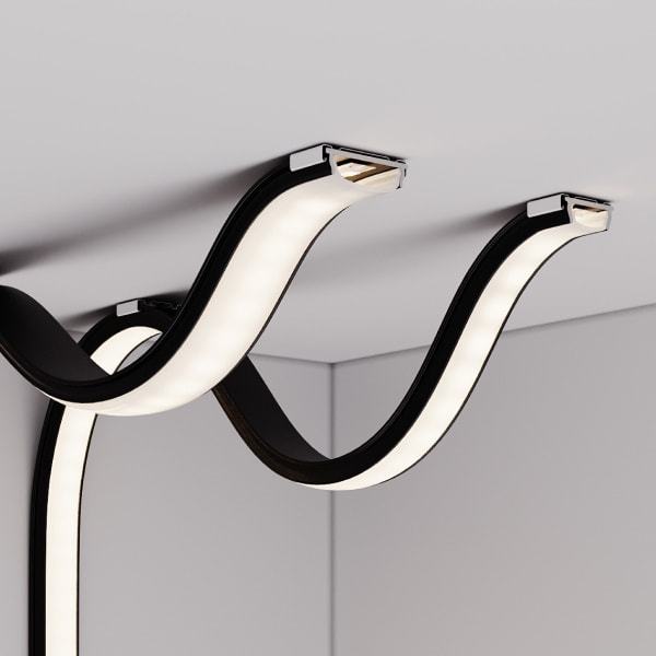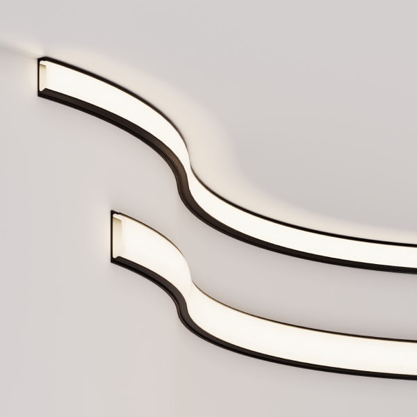 Новинки серии предназначены для контурной подсветки изогнутых поверхностей, а также для создания световых линий в форме дуг, окружностей и волн. Профили устанавливаются накладным способом с помощью специальных держателей.
