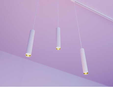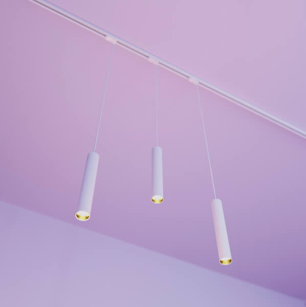 Белые, черные и золотые корпуса из алюминия на регулируемом подвесе.