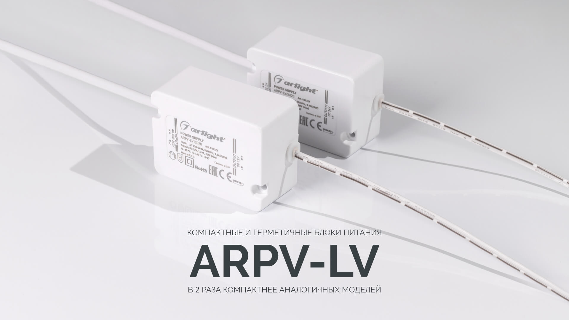 Блоки питания мощностью 20 Вт в герметичном пластиковом корпусе (IP67) созданы для использования со светодиодными лентами.