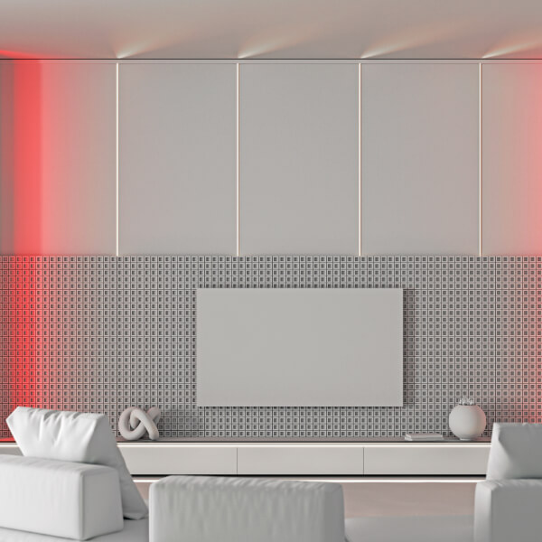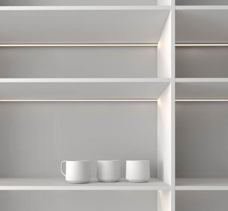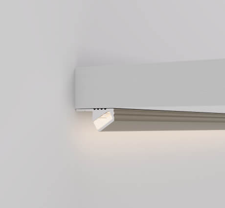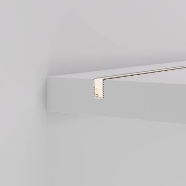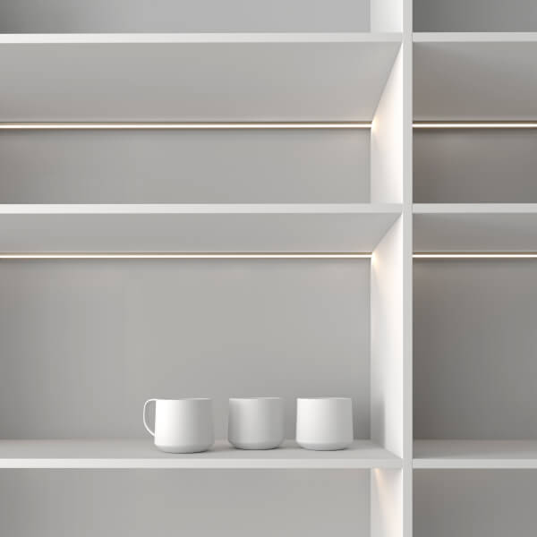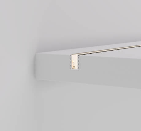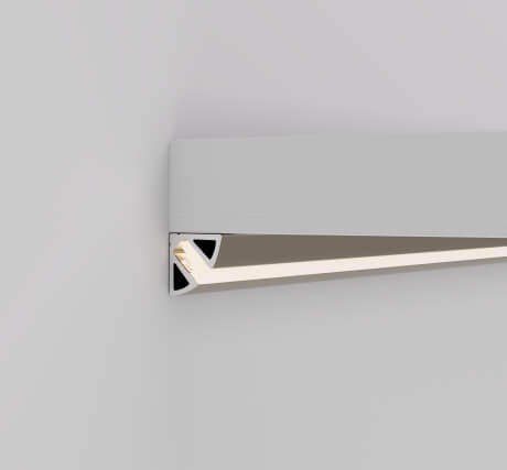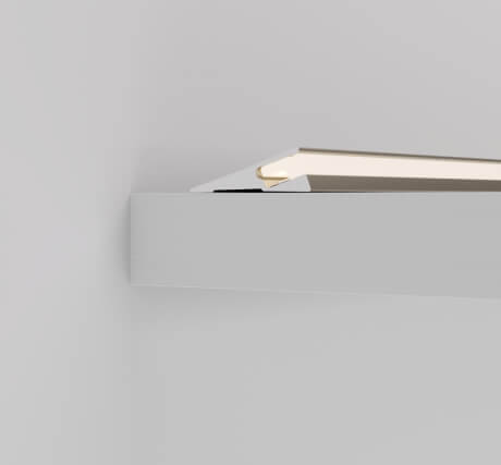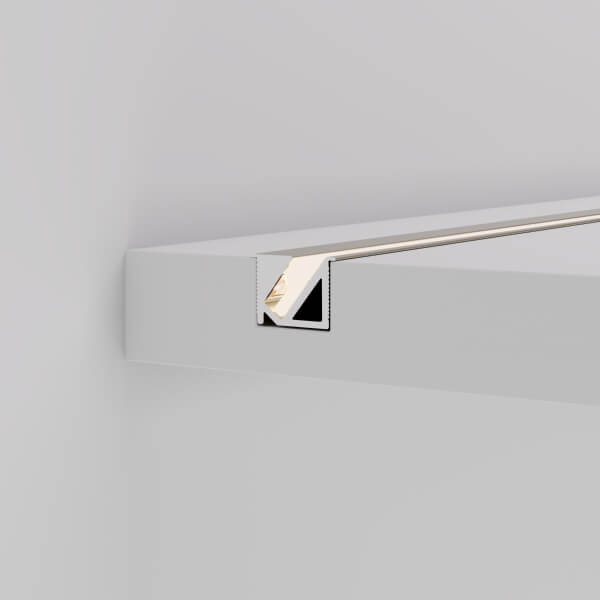 Небольшая ширина профиля и использование узких лент (до 5 мм) позволяют реализовать изящную декоративную подсветку и акцентное освещение. Площадка для ленты располагается на боковой стенке профиля, за счет чего возможно создание световой линии шириной всего 3.8 мм.
