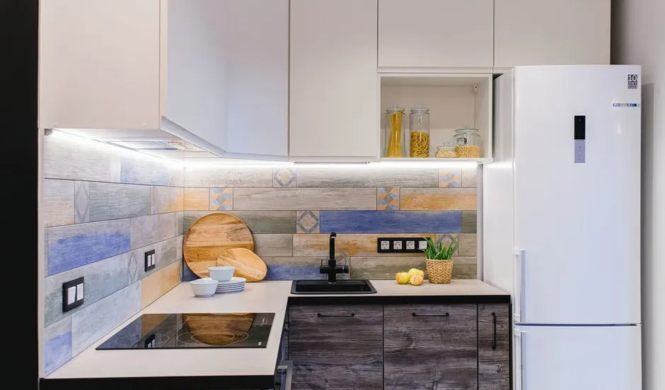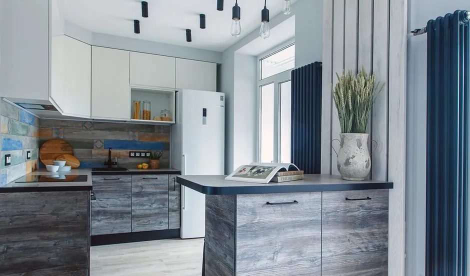 В интересном дизайнерском проекте используется разноплановое освещение, которое гармонично дополняет интерьер. Можно рассмотреть каждую деталь, цветовые акценты и безупречные белоснежные поверхности. Освещение в кухне-гостиной реализовано с помощью мобильных трековых светильников — они могут легко перемещаться вдоль шины и менять угол излучения света. Все светильники имеют высокий индекс цветопередачи (CRI>90). Для подсветки в коридоре использованы встраиваемый профиль и светодиодная лента теплого свечения.