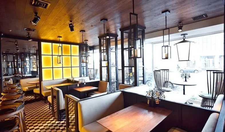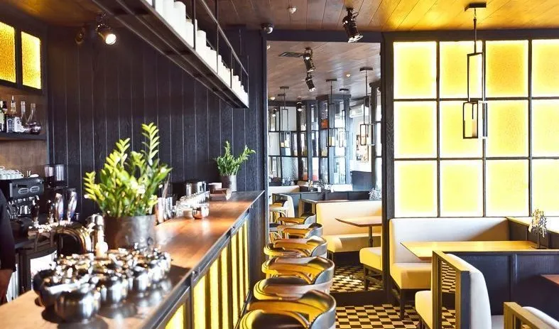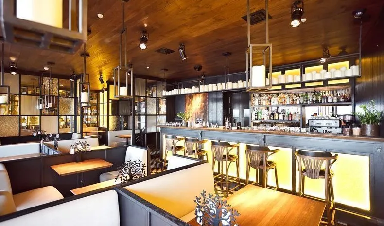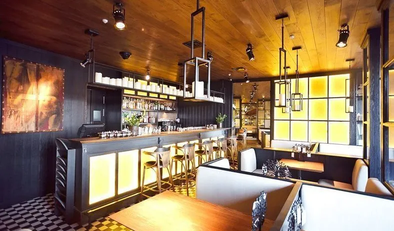 Декоративная и акцентная подсветка бара-ресторана "Solnce" («Солнце») на проспекте Добролюбова в Санкт-Петербурге. В подсветке интерьера использовалось светодиодное оборудование торговой марки
