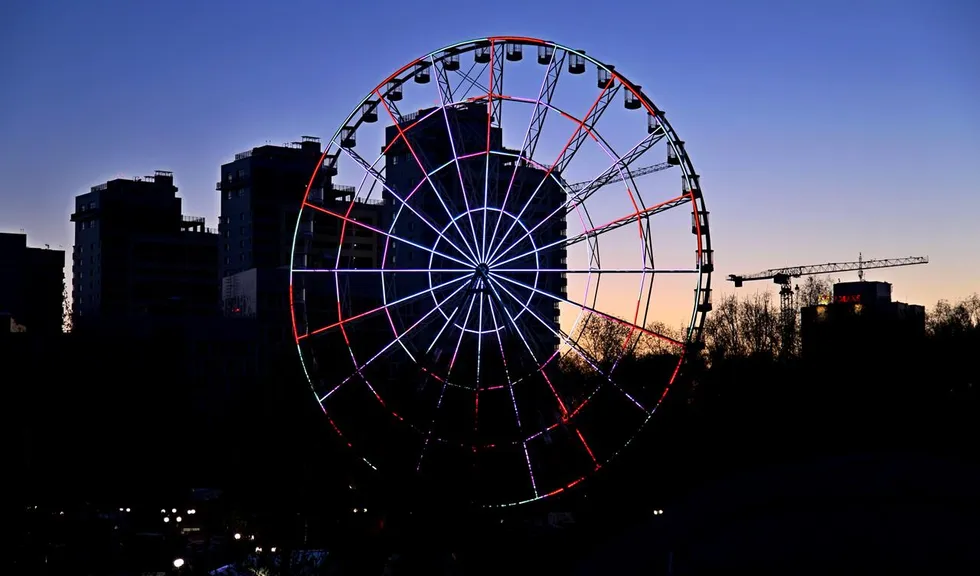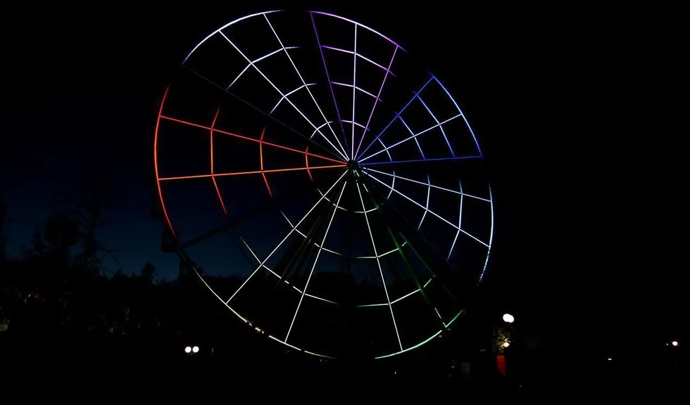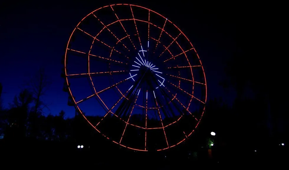Создание системы динамической светодиодной подсветки колеса обозрения в парке Кырлай города Казань.
