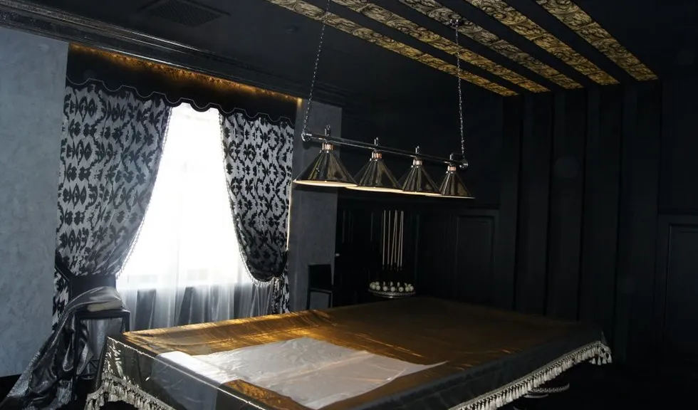 Перед нами элитный оздоровительный центр, включающий в себя баню и сауну, бильярдную, бар, комнату отдыха для гостей. Интерьер выполнен преимущественно в строгой черно-белой гамме и при этом богато украшен орнаментами и изысканными деталями, создающими атмосферу роскоши и богатства.