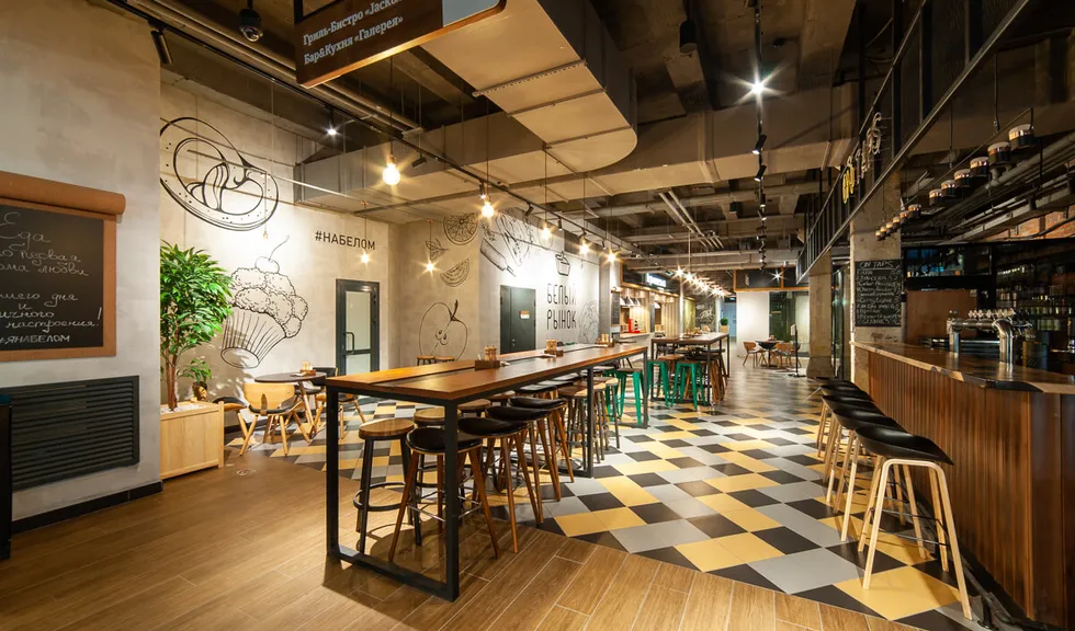 Концепция «Белый рынок» подразумевает объединение на одном пространстве общественных заведений различных форматов: торговых, гастрономических и культурных.
