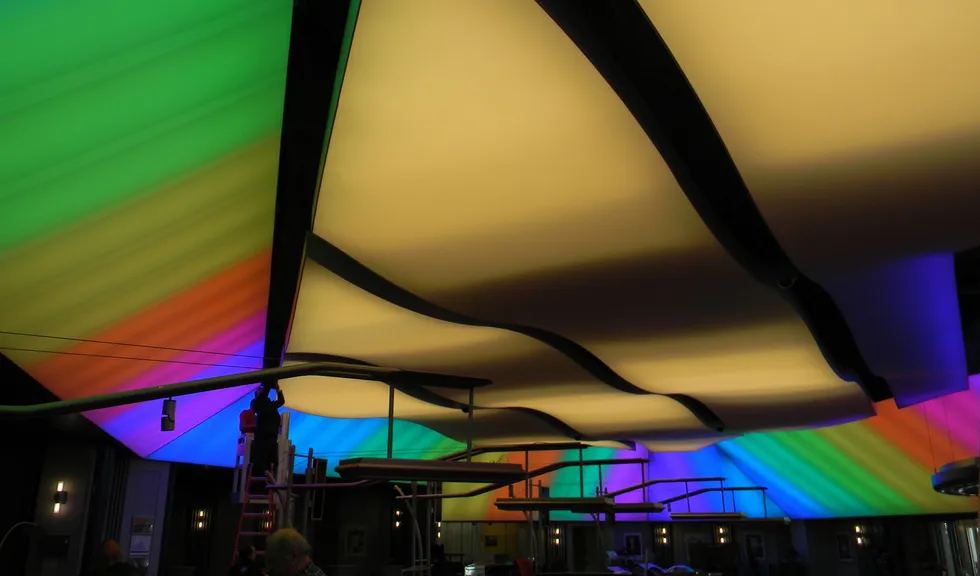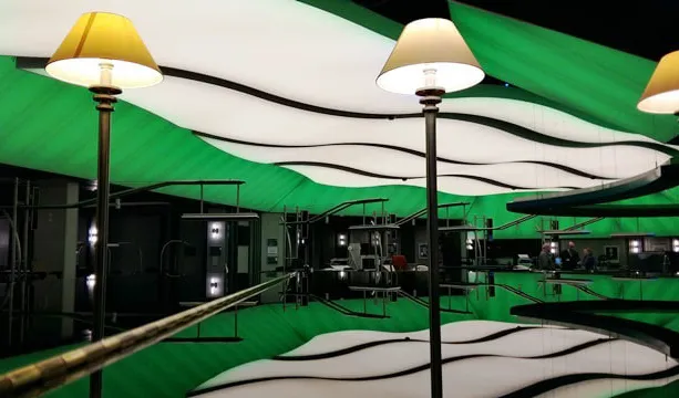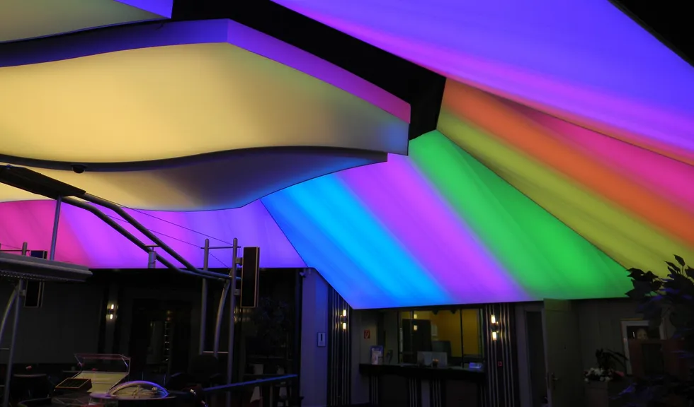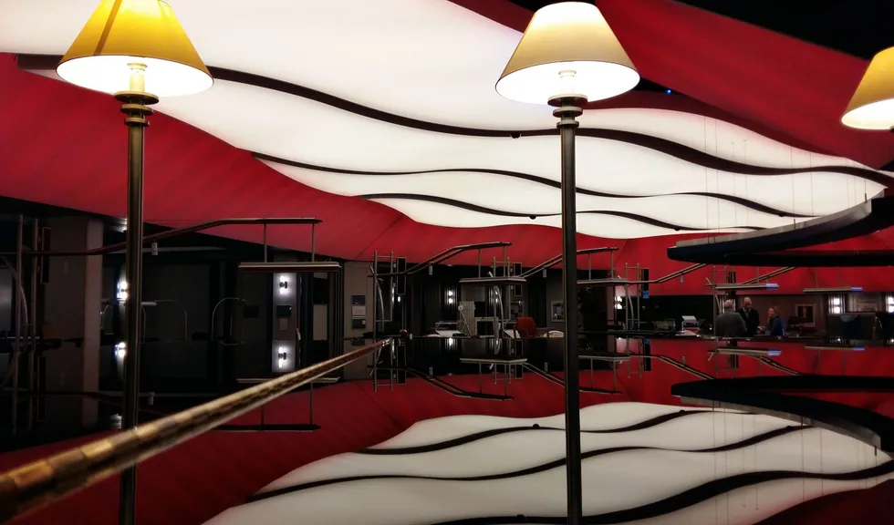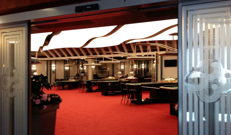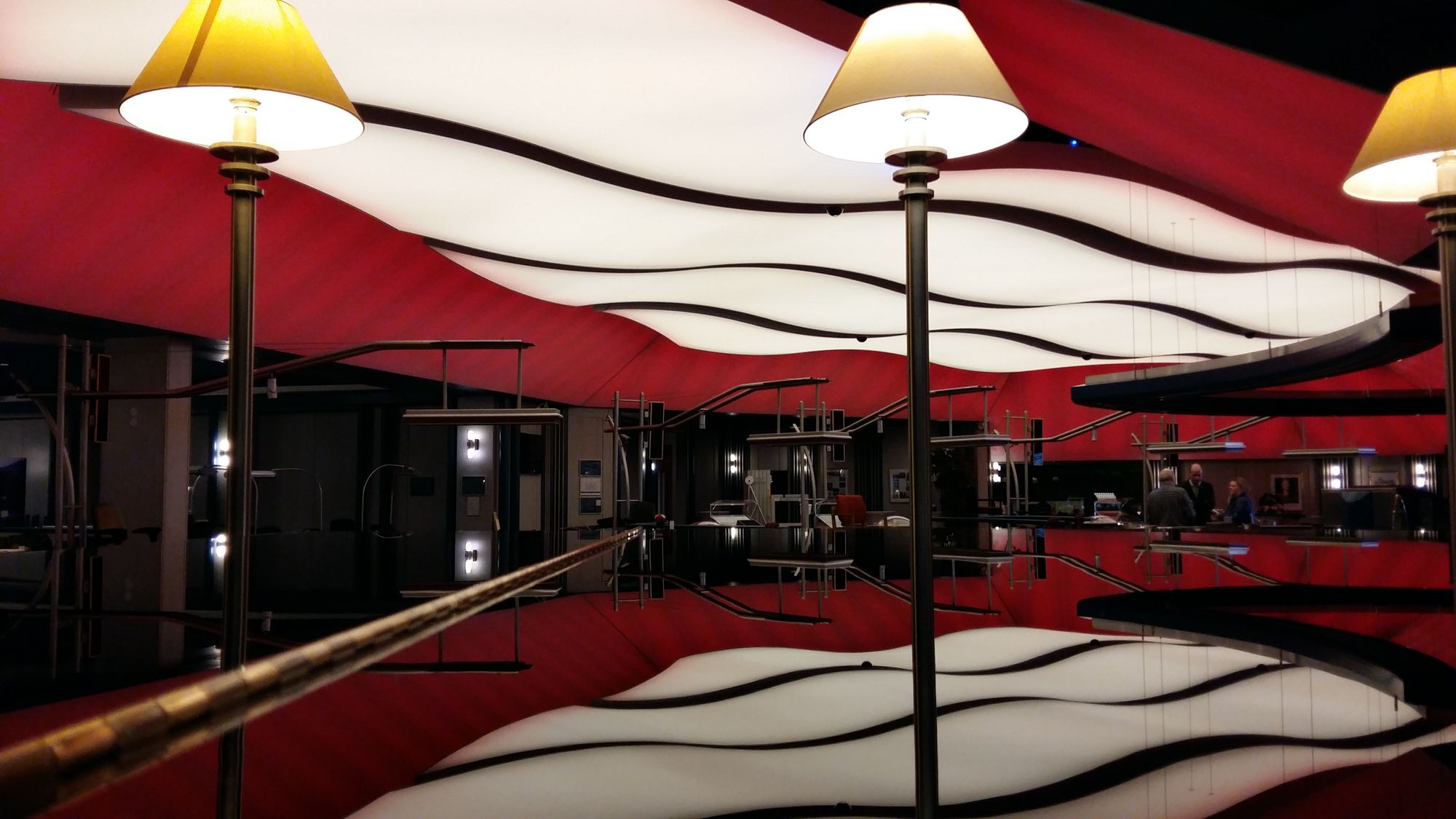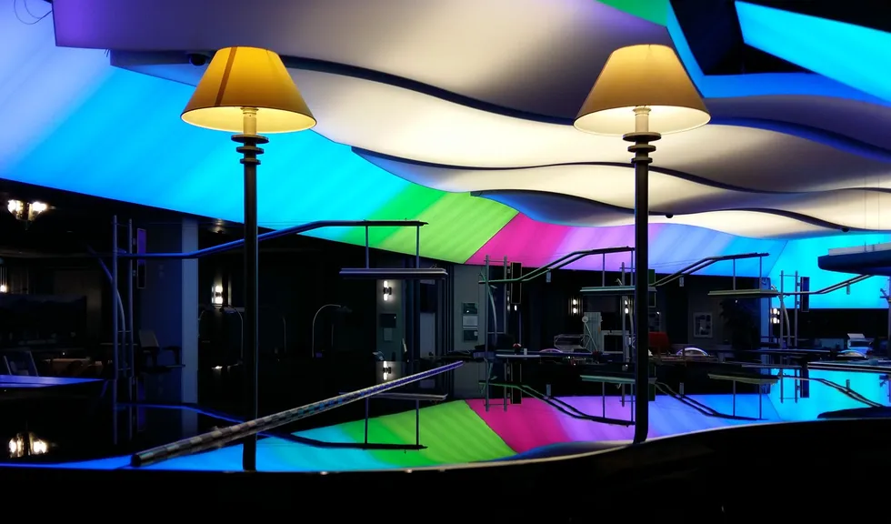 Эксклюзивный проект освещения разработан по индивидуальному проекту. В центре композиции — гигантские потолочные конструкции, представляющие собой лайтбоксы в форме волн шириной 3 м и длиной 8–15 м. Периметр игрового зала оформлен светодиодными RGB-лентами с цветодинамическими эффектами, которые можно менять с помощью сенсорной панели. Пространство казино становится удивительным местом, где свет способен играть разными оттенками, поддерживая общий игровой настрой посетителей.