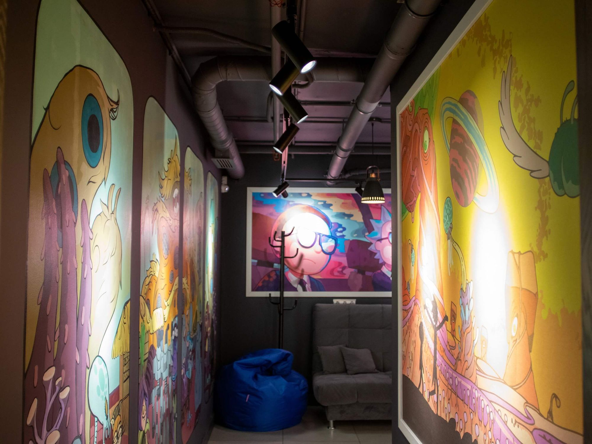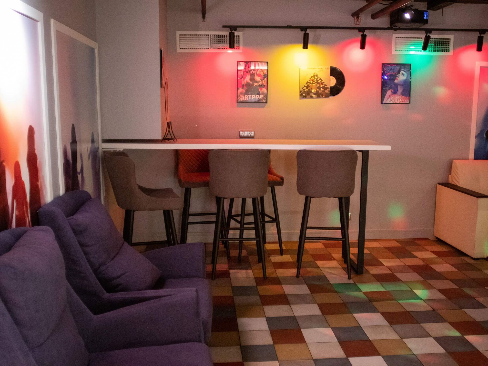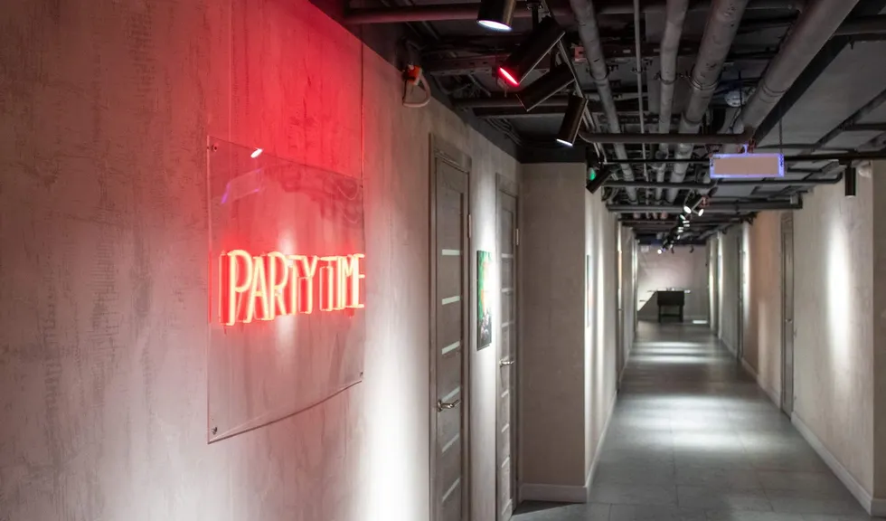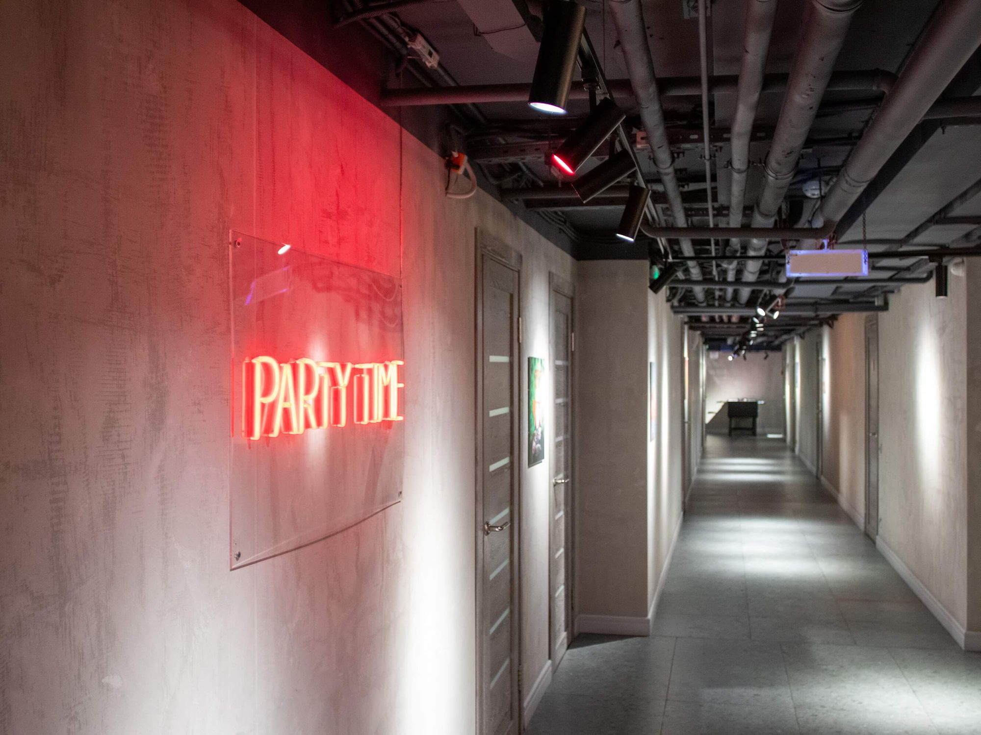 Светодизайн играет одну из главных ролей в этом проекте. Для освещения лофт-пространства Party time использованы трековые светильники, которые можно удобно и плавно перемещать по шине, расставляя световые акценты и освещая именно те локации, которые задействованы в данный момент. Трековые системы в черном исполнении стильно смотрятся в каждой тематической локации лофта и не привлекают к себе внимание, а лишь создают качественное акцентное освещение.