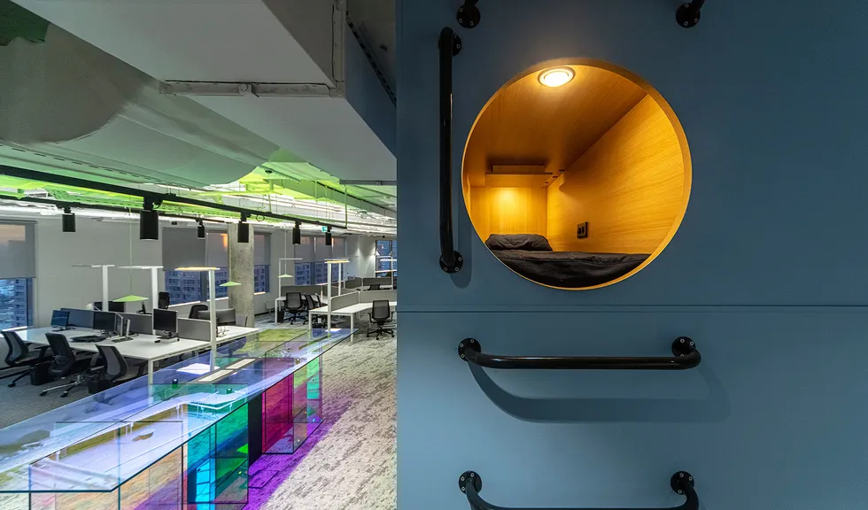 Основой концепции проекта стало стремление приблизиться к природе через форму и цвет. Сдержанные натуральные оттенки в оформлении, интерьер в стиле хай-тек без лишних деталей: максимум простоты, пространства и естественного света. В качестве искусственных источников света были выбраны стильные и лаконичные трековые светильники серии ZEUS с высоким индексом цветопередачи CRI>90. Светильники простой формы черного цвета идеально смотрятся в любой зоне офиса и обеспечивают качественное акцентное освещение. Свободное перемещение светильников вдоль трека позволяет создать комфортную световую среду в любой части коворкинга.