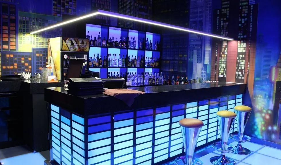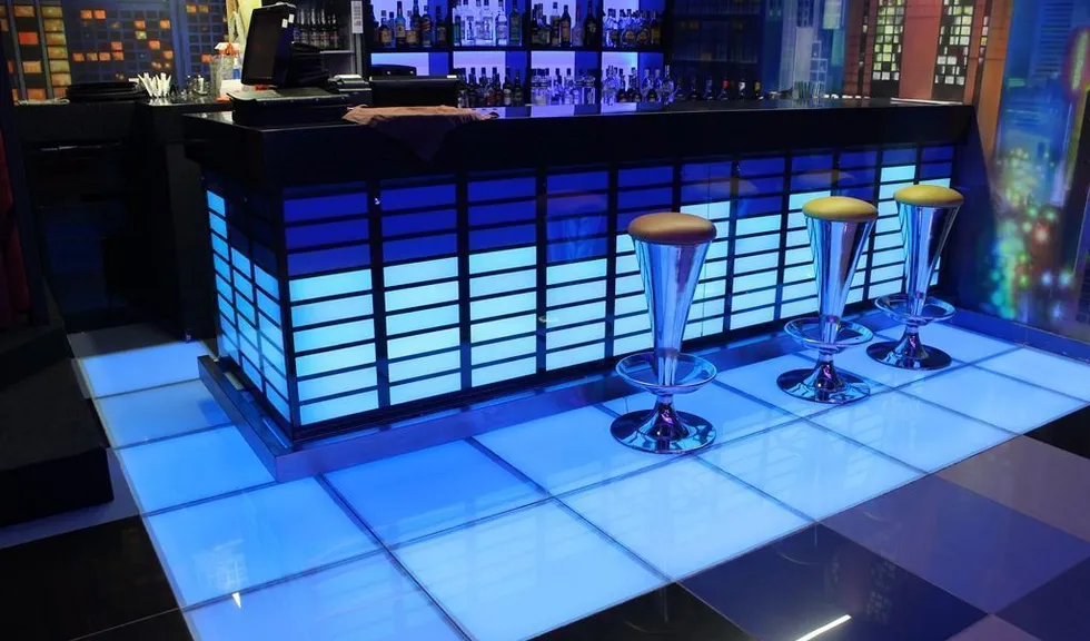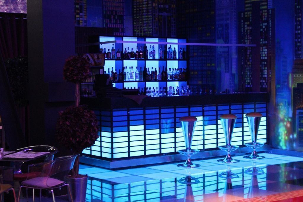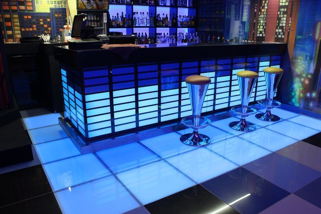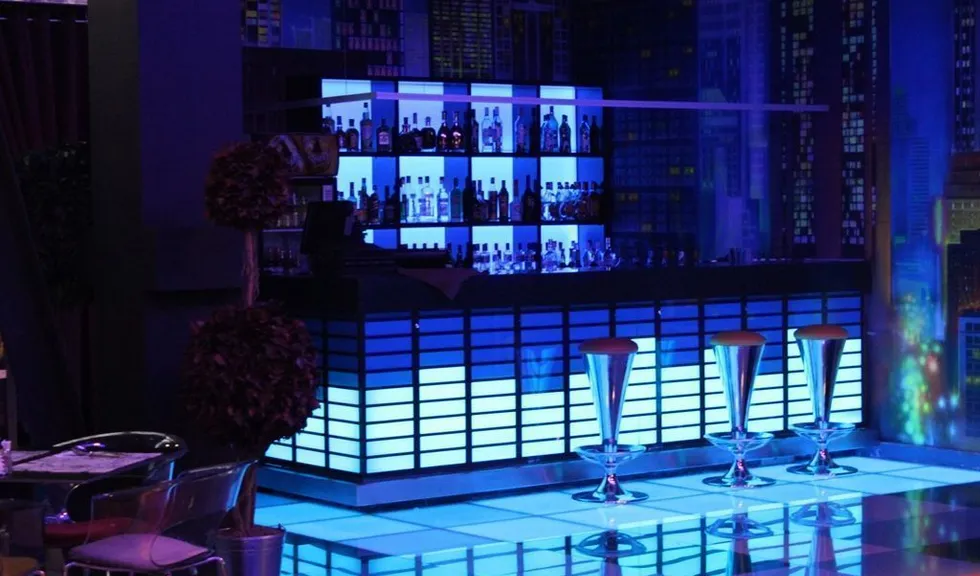 arlight®. Барная стойка была оформлена в виде эквалайзера с движущимися индикаторами. Для реализации данной задумки использовалась светодиодная лента