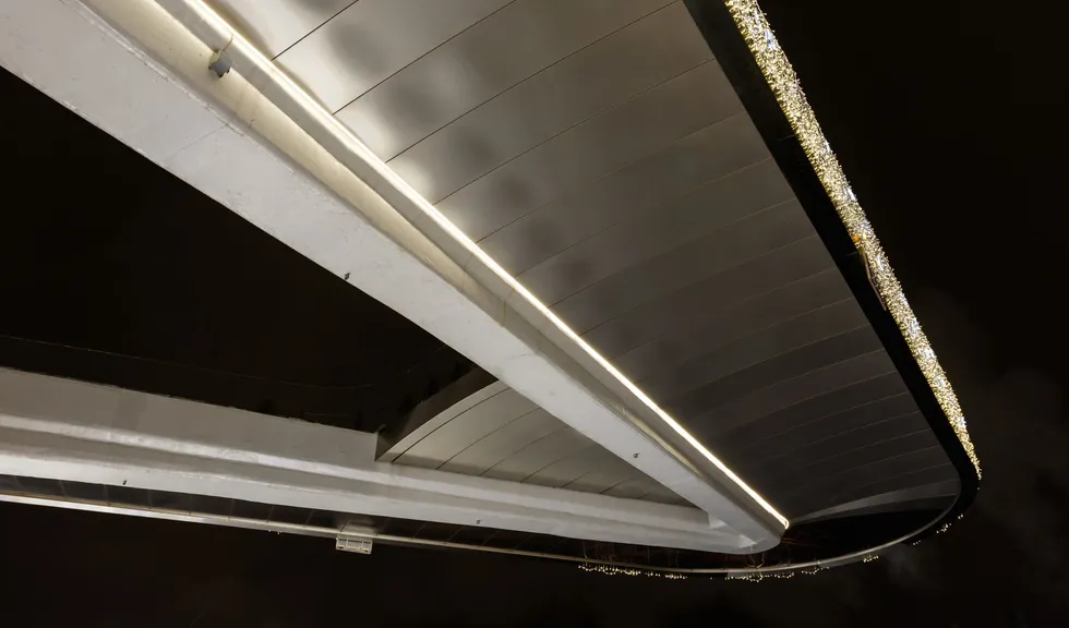 По всему периметру «парящего» моста организована светодиодная подсветка с использованием профилей и герметичных светодиодных лент. Эффектное и яркое декоративное освещение в сочетании с необычным архитектурным обликом моста становится центром притяжения гостей парка «Зарядье». В проекте использованы анодированные алюминиевые профили, устойчивые к неблагоприятным внешним воздействиям и коррозии. Светодиодные ленты с высокой степенью пылевлагозащиты обеспечивают надежную эксплуатацию при любых погодных условиях. Матовые рассеиватели помогают создать равномерное свечение, приятное для глаз.