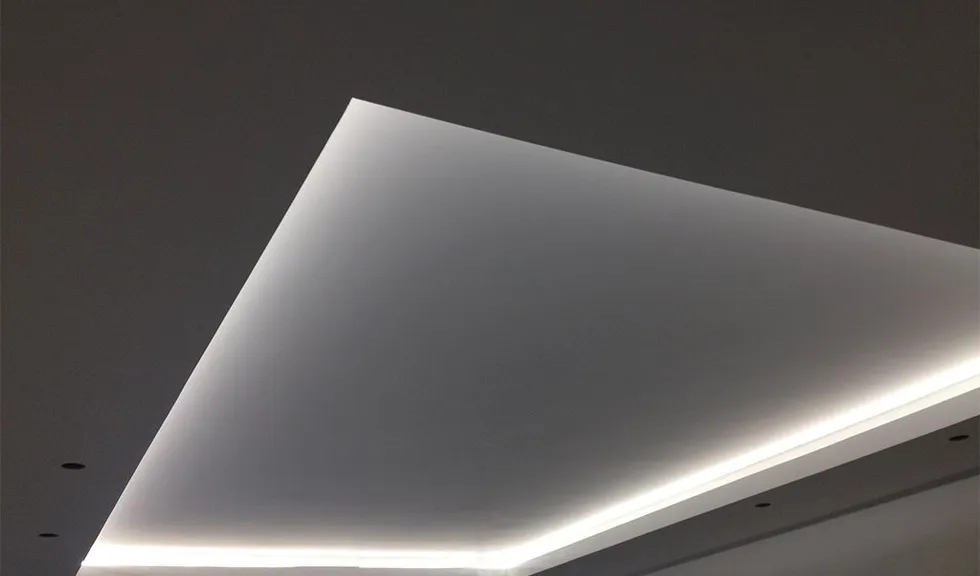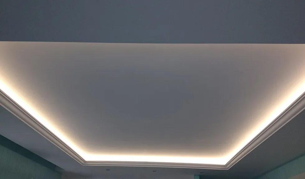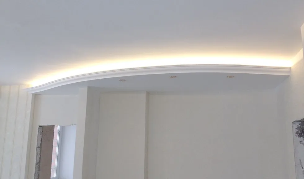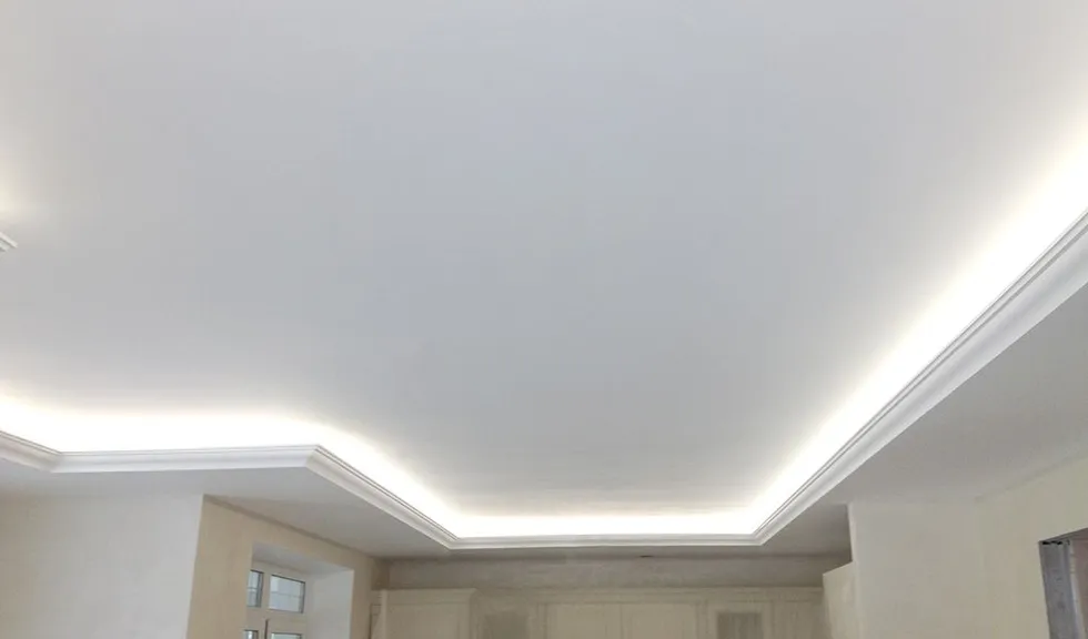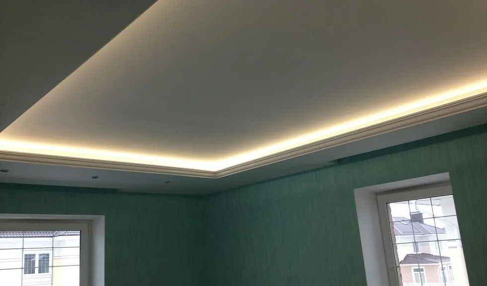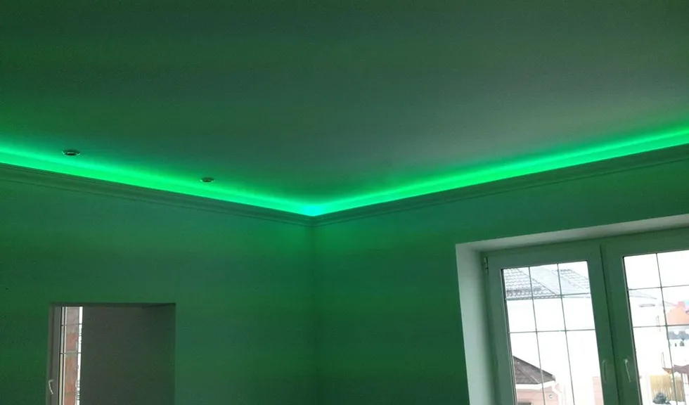 В одном из помещений была использована многоцветная RGB светодиодная лента Arlight, цвет и яркость которой можно выбирать с помощью RGB контроллера. Эта лента была установлена в декоративный карниз из полиуретана.
