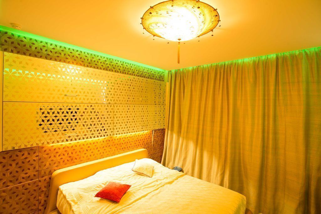 Сегодня мы побываем в гостях ещё в одной квартире, где светодиодное освещение играет далеко не последнюю роль. Необычные решения и смелые идеи воплощаются в каждой комнате, а яркая и многоцветная светодиодная подсветка становится оправой для столь креативного дизайна!