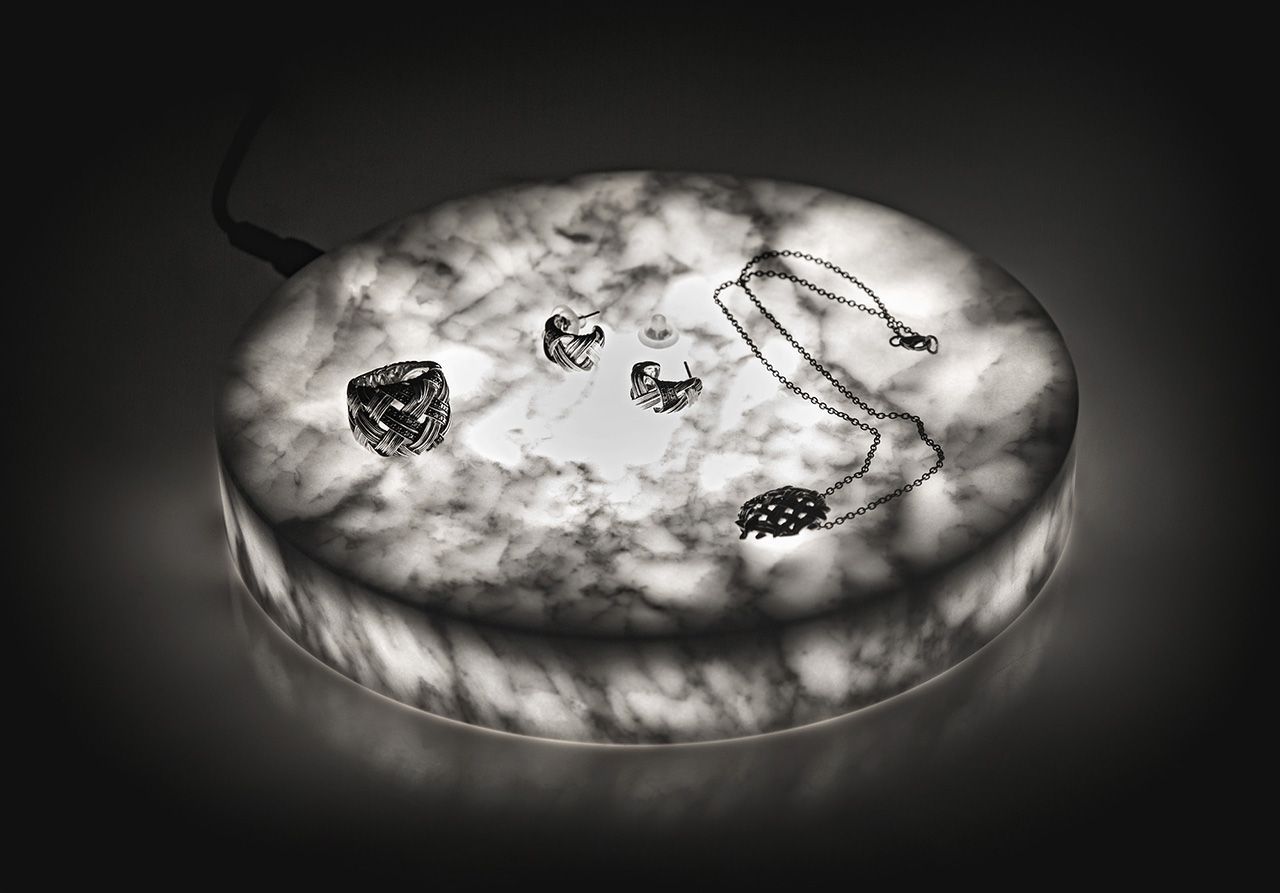 Для реализации проекта использованы светодиодные листы arlight® LX-500 12V Cx1 Cool White (5050, 105 LED), они были обрезаны по форме пьедесталов и закреплены на их внутренней стороне. На торце пьедестала для большей эстетичности и возможности быстро подключать и отключать питание был установлен стандартный разъем DC. Мрамор с мягким внутренним свечением выглядит очень эффектно и позволяет немного подсветить находящиеся на нём предметы, например, хрустальную вазу или драгоценные украшения.