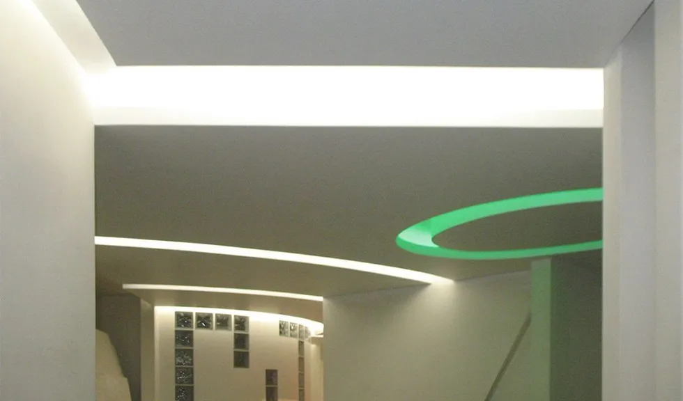 В данном проекте была реализована светодиодная подсветка потолков и карнизов из гипсокартона.