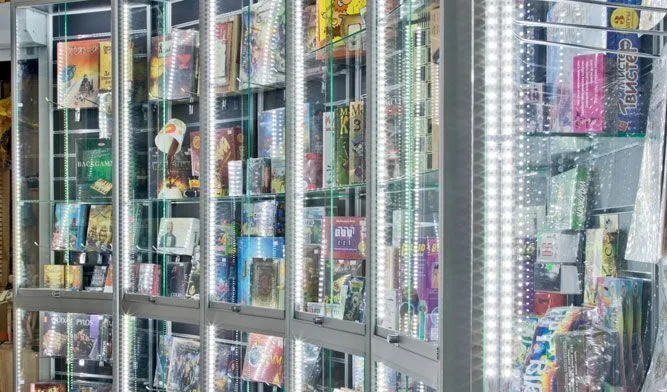 Подсветка стеклянных витрин магазина настольных игр в торговом центре на основе светодиодного оборудования торговой марки arlight®.