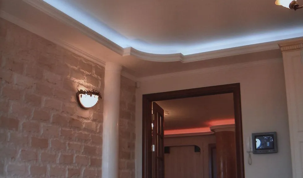 Начнем с подсветки потолка, которая присутствует во всех помещениях данного объекта. Светодиодная лента arlight® была установлена в потолочные карнизы и ниши многоуровневых потолков. Светодиодная подсветка не только подчёркивает декоративные формы, но и служит источником дополнительного света, который можно включать когда в основном свете нет необходимости или когда хочется, чтобы свет был мягким.