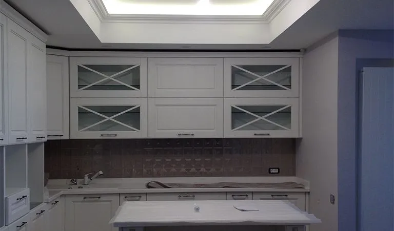 Светодиодная лента arlight® была установлена повсюду: многоуровневых потолках, потолочных карнизах, разнообразных нишах стен и потолков. На кухне сочетается функциональная и декоративная подсветка: подсветка рабочей поверхности кухни - её столешницы, установленная под верхние шкафы, и подсветка фасадов нижних шкафов, вмонтированная в кромку под столешницей.