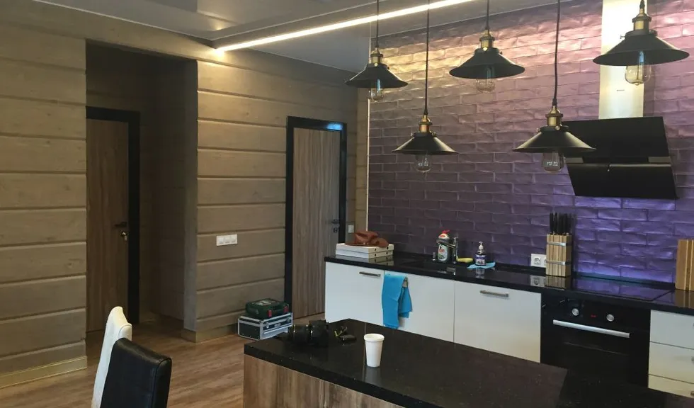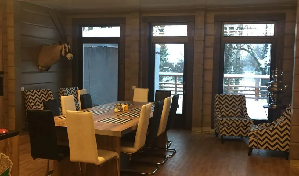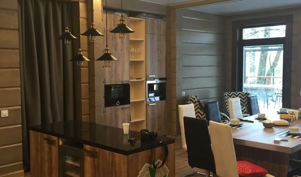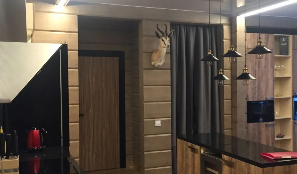 Освещение в загородном доме выполнено светодиодными светильниками, встроенными в потолочные балки. Корпуса светильников скрыты от глаз, а матовый экран находится на одном уровне с нижней плоскостью балки, благодаря чему создаётся эффект линий света. Для изготовления светильников была использована мощная светодиодная лента arlight® с современными светодиодами smd 2835, установленная во встраиваемый алюминиевый профиль для светодиодной ленты.