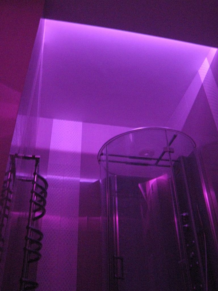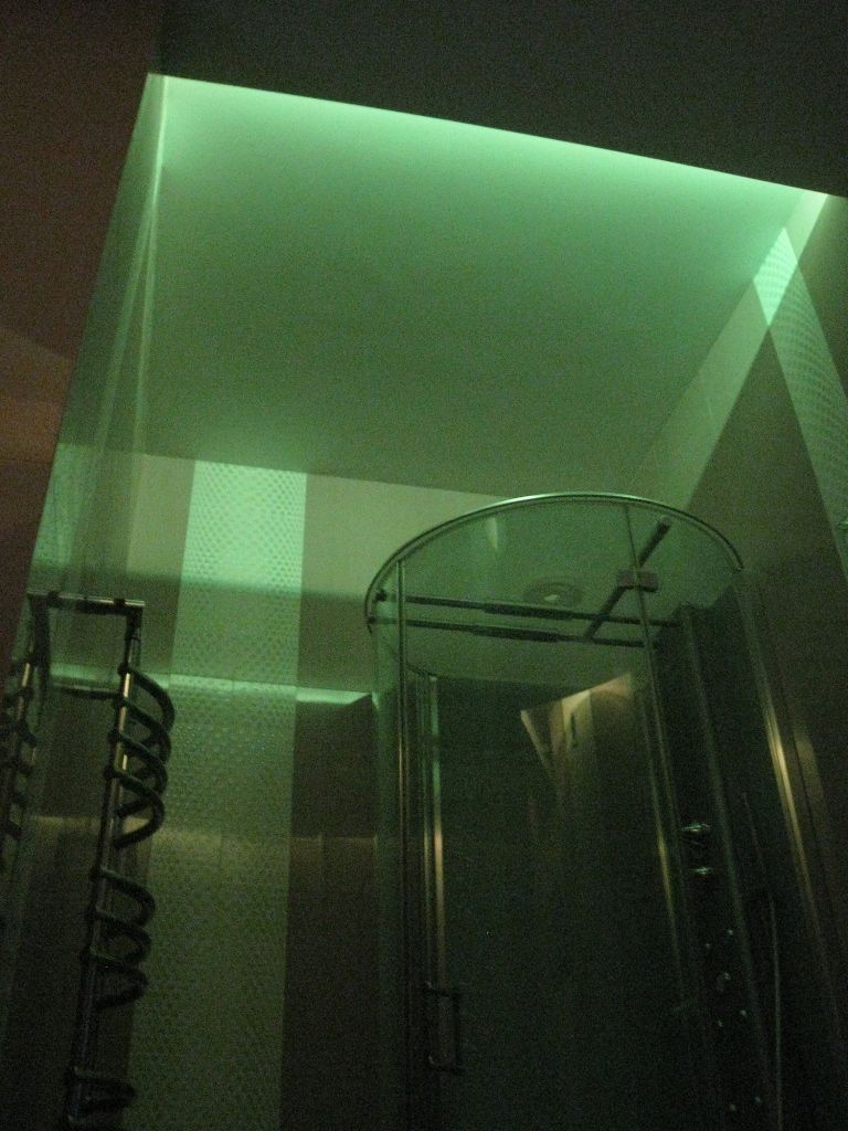 Изменение атмосферы в санузлах было реализовано с использованием многоцветной светодиодной ленты arlight® и точечных светодиодных светильников. Сочетание цвета интерьера и цветной светодиодной подсветки дало удивительные эффекты, превращая обстановку в помещениях в настоящую сказку.