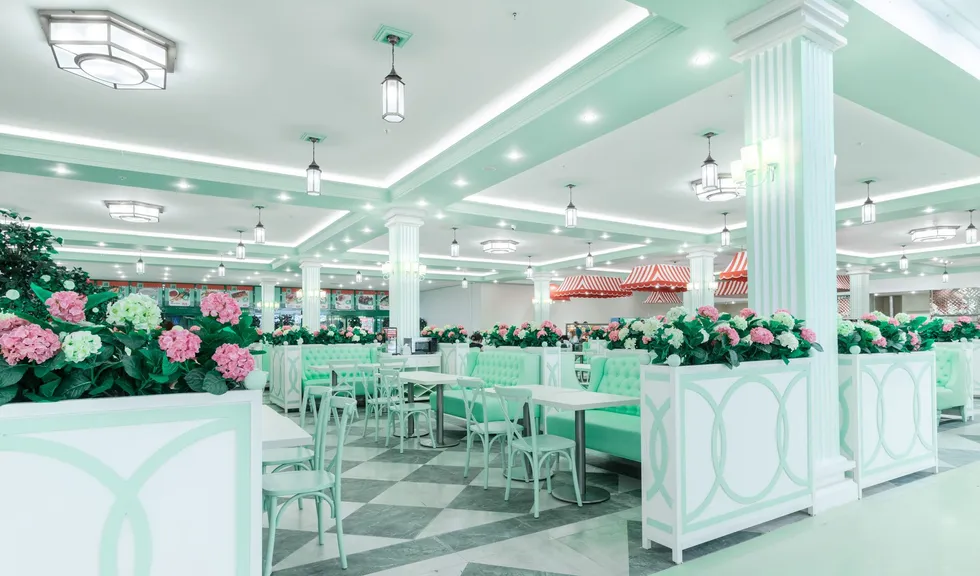 Светодиодную контурную подсветку использовали по всему периметру потолка торговой площади. Такой световой прием является универсальным решением и позволяет организовать качественное основное освещение большой площади. Дневной свет с высоким индексом цветопередачи выгодно подчеркивает все достоинства предметов интерьера, сохраняет высокую работоспособность сотрудников в течение всего дня и побуждает посетителей к покупкам.