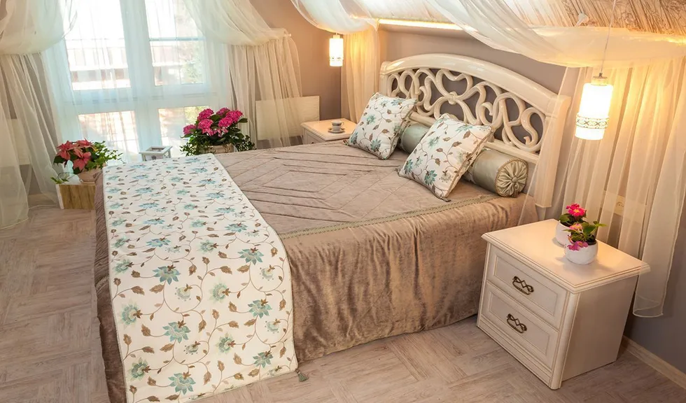 Светодиодная подсветка добавила уюта в спальне загородного дома, которая была переделана в рамках проекта «Фазенда» на Первом канале.