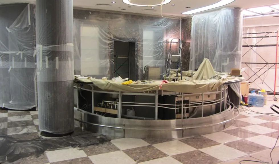 В ходе реконструкции ресторана в отеле "Азимут" была выполнена витражная подсветка двух барных стоек и двух световых коробов (лайтбоксов).